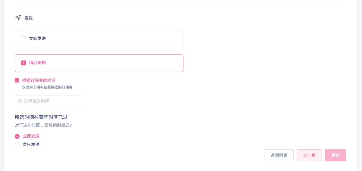 选择稍后安排-根据订阅者的时区发送